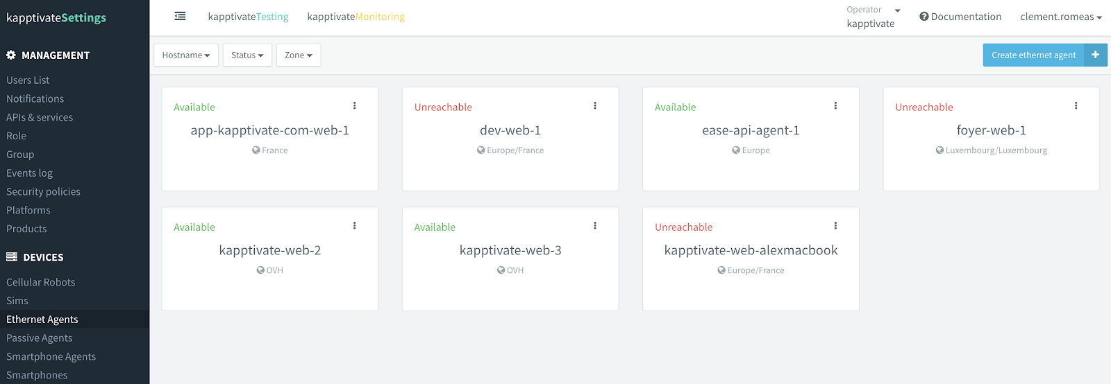 Open the Kapptivate interface and check that the corresponding agent is available (if not, try the troubleshooting steps):