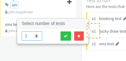 You can easily change the number of times a test will be repeated by clicking its repetition number: