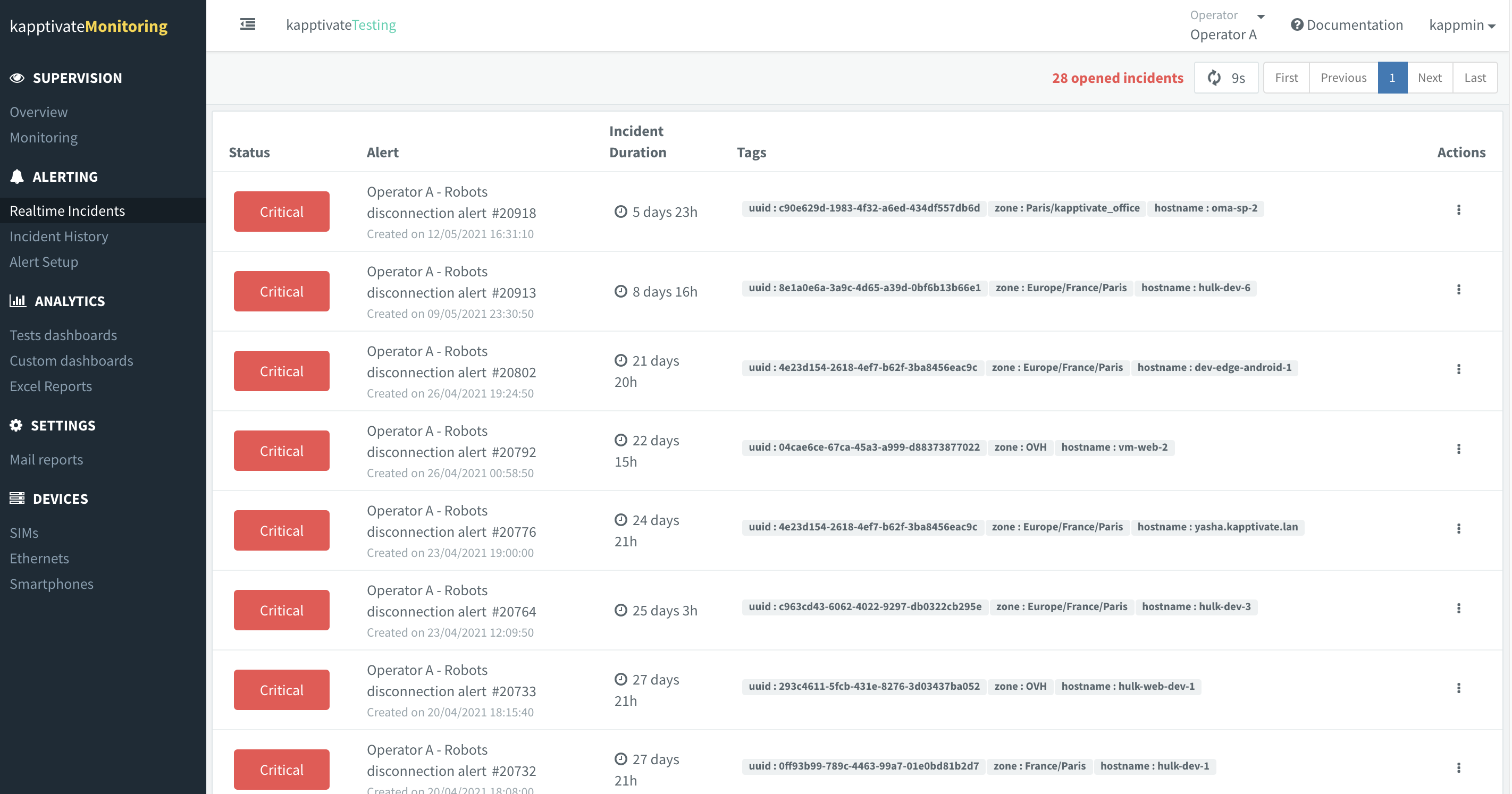 You can define alerts on specific criteria and check if incidents have been triggered in real time by clicking on "realtime incidents" in the Alerting section.