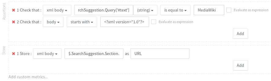 The body, json body and xml body options, present in the assertion options and the store options (except for body) of API actions, all have the same goal of helping you run precise assertions on API responses.